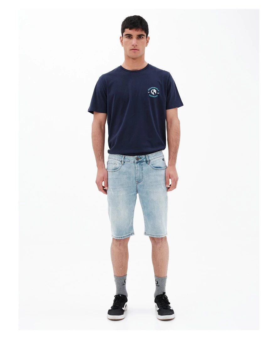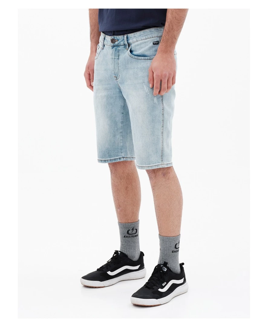 Ανανέωσε το casual look σου, με την ανδρική jean βερμούδα EMERSON! Το denim short pants, για άνδρες, διαθέτει κλασσική κατασκευή με 5 τσέπες, και κλείσιμο με φερμουάρ και κούμπωμα. Οι ετικέτες με λογότυπο, ολοκληρώνουν το casual style.