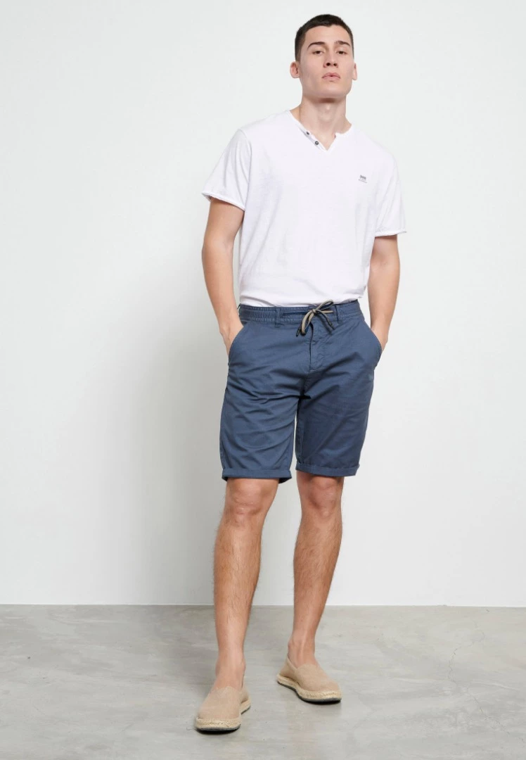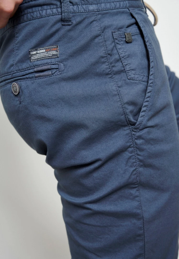 Ανανέωσε το casual look σου, με την ανδρική βερμούδα Funky Buddha! Η chino βερμούδα, για άνδρες, διαθέτει τέσσερις τσέπες στο σύνολο, για να μπορείς να κουβαλάς τα summer essentials, χωρίς να επιβαρύνεις τα χέρια σου. Η ετικέτα με λογότυπο Funky Buddha, στο πίσω μέρος, ολοκληρώνει το casual style.