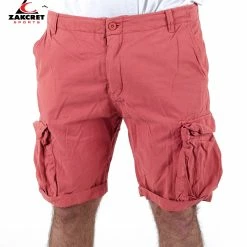 Ανδρική υφασμάτινη βερμούδα ZAKCRET. Βερμούδα υφασμάτινη με θηλάκια για ζώνη που κλείνει με κουμπί και φερμουάρ. Διακοσμείται με δύο τσέπες στα πλαϊνά,δύο στο πίσω μέρος και μεγάλες τσέπες με κουμπάκια στα παντζάκια.
